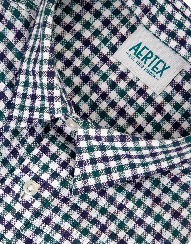 Aertex Taunton Blue Gingham Check Short Sleeve Polo