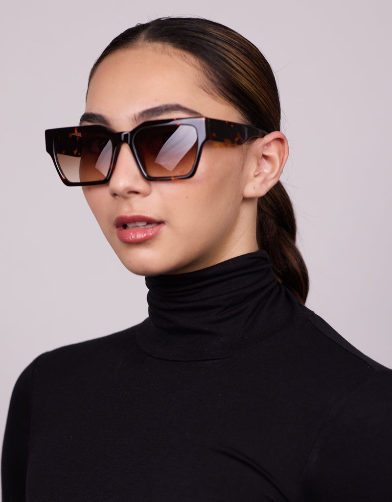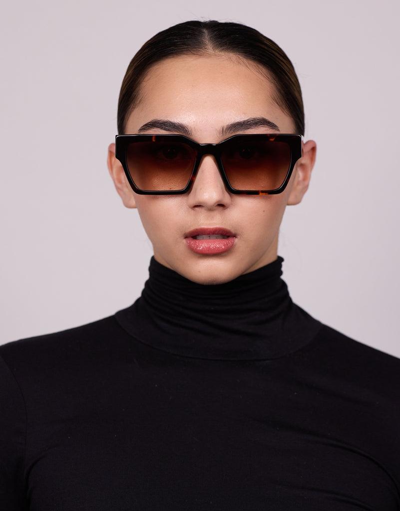 A rich brown tortoiseshell pattern with warm tones that offer a classic yet modern aesthetic. Ideal for those who appreciate vintage-inspired elegance. Comes in brown gradient and orange monochrome lenses.