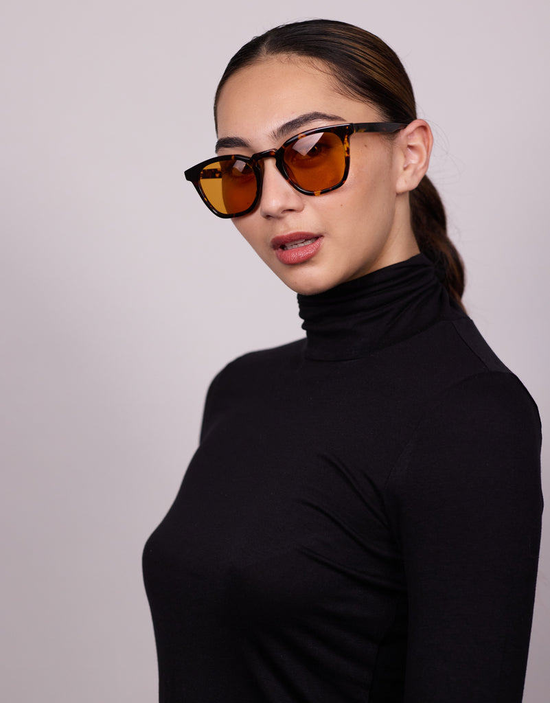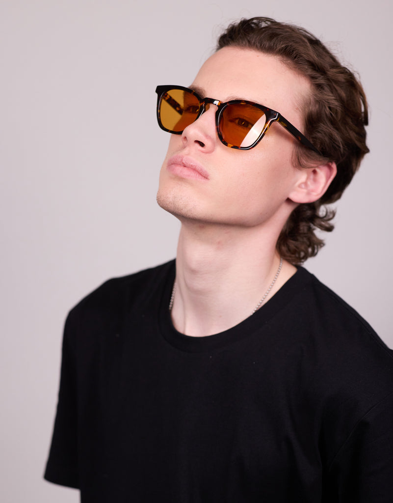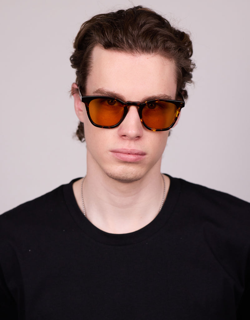 A rich brown tortoiseshell pattern with warm tones that offer a classic yet modern aesthetic. Ideal for those who appreciate vintage-inspired elegance. Comes in brown gradient and orange monochrome lenses.