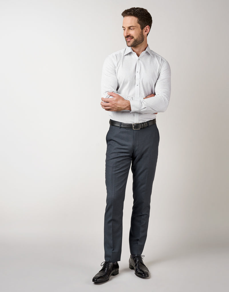 Our most popular fit. A contemporary cut that is slightly wider across the Jacket chest and abdomen and wider in the Trouser leg than the Narrow fit. It creates a flattering silhouette on men of all shapes and sizes.