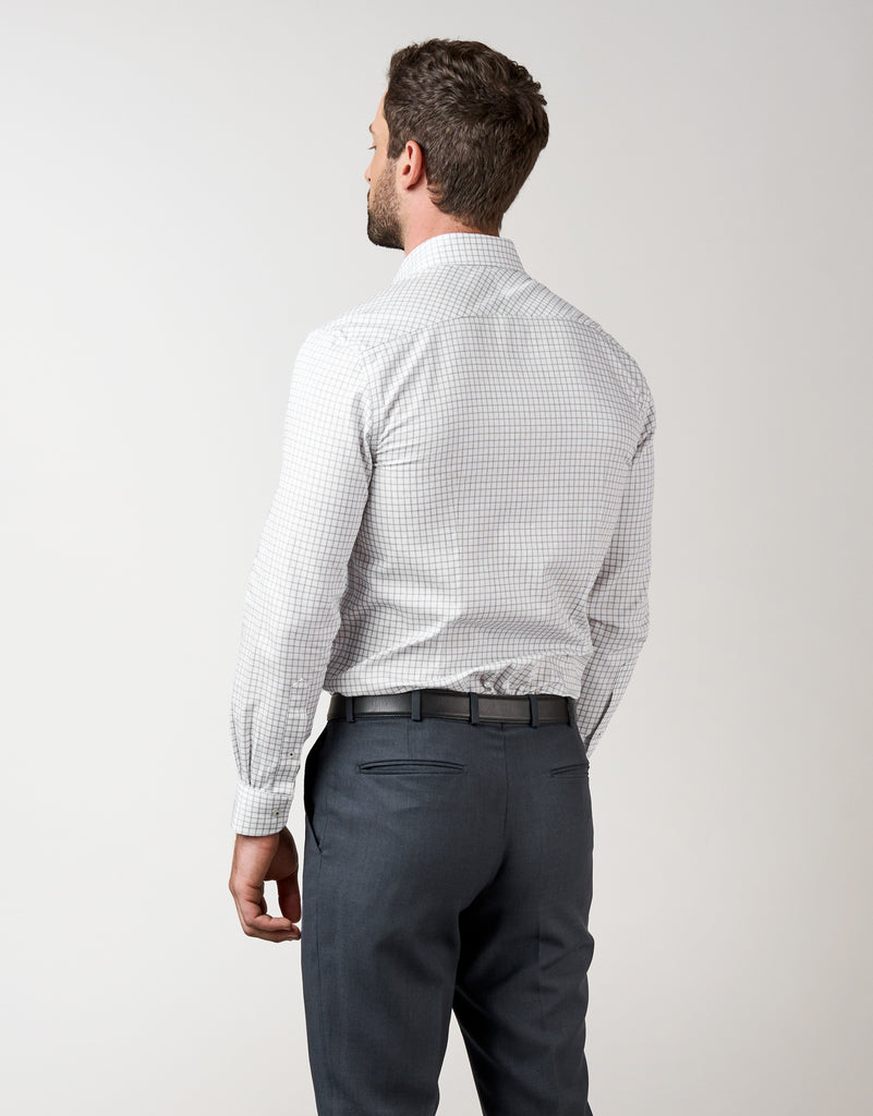 With its minimalist check pattern and sleek skinny fit, the Banks Shirt brings structure to your style. Tapered through the chest and sleeves, it delivers a streamlined silhouette that’s form-fitting but never restrictive. Team it with tailored pants and white sneakers for a crisp, pared-back outfit.