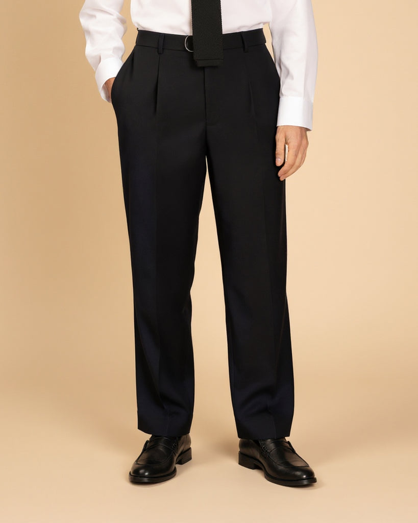 The Crete marks a decisive shift toward generous tailoring with our broadest trouser silhouette to date. Cut from 100% wool, this high-rise trouser commands attention through its relaxed wide-leg proportions, engineered to maintain fullness across the hip and thigh before settling into a refined taper below the knee. Single pleats offer ease of movement, whilst belt loops provide visual balance against the expansive cut. The plain hem ensures an uninterrupted line and natural fabric fall. Designed as a natural pairing with our Doppio and Cyprus jackets, the Crete channels the unforced elegance of vintage 80s and 90s menswear, a contemporary statement that marries comfort with timeless tailoring sensibility.