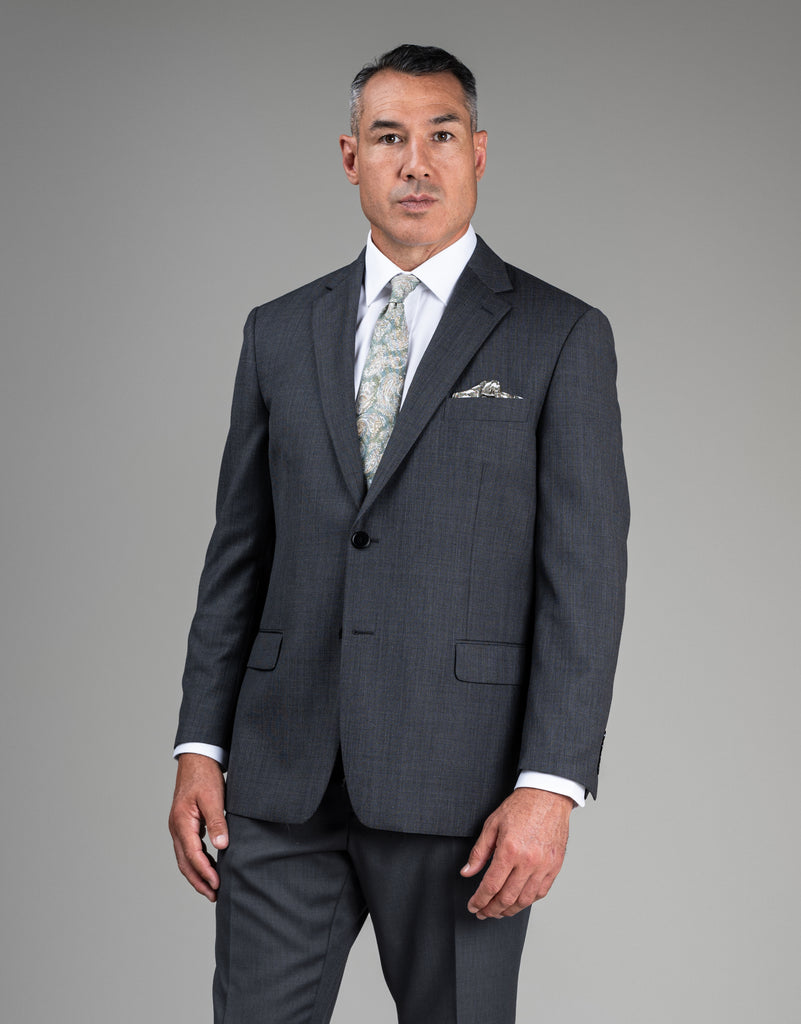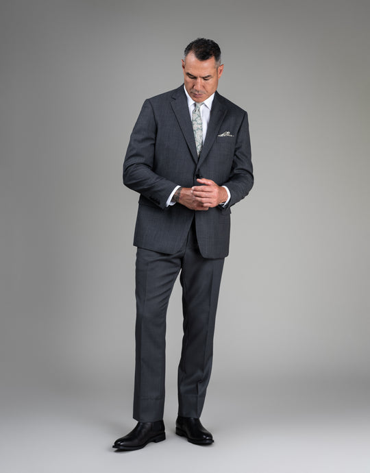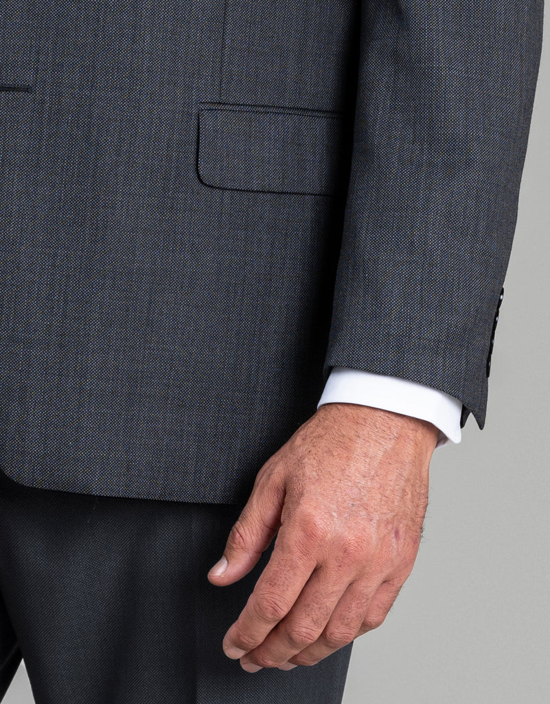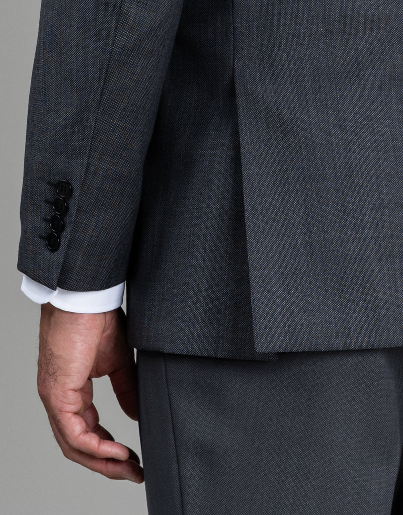This charcoal birdseye Cumbria Suit features a delicate birdseye pattern and is crafted from a sturdy wool blend, providing a relaxed fit for all-day comfort. A smart investment for anyone seeking a timeless navy suit that goes the distance.