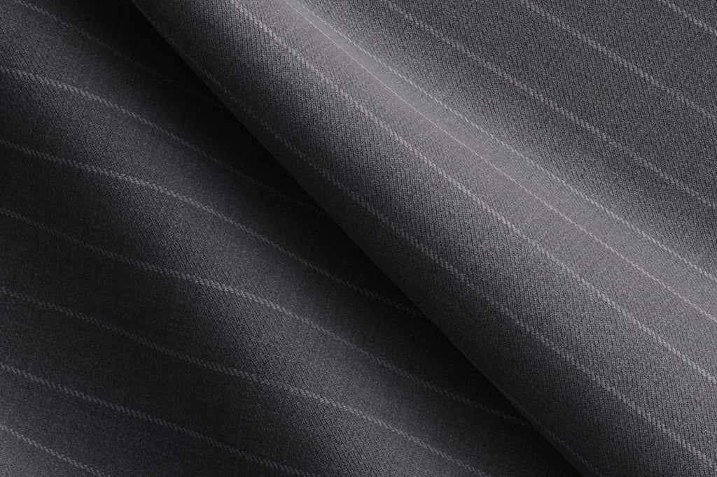 This made to measure grey chalk stripe 100% Merino wool trouser is a symbol of classic sophistication. Crafted for comfort and breathability, its bold chalk stripe pattern adds a touch of elegance, making it an ideal choice for formal and professional occasions. 10015.245/1