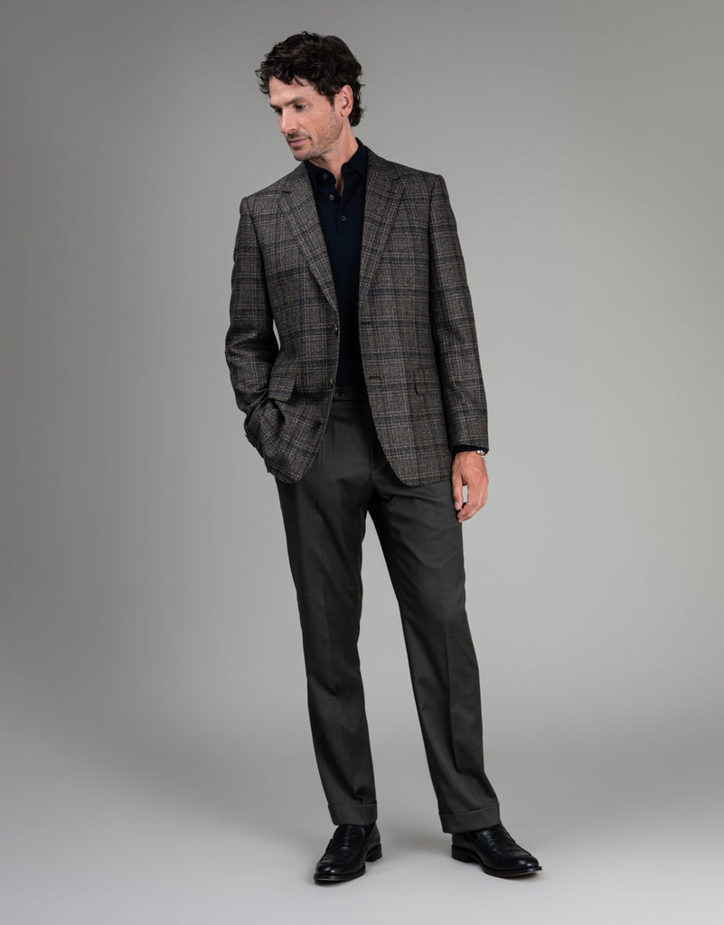 Our fullest fit across the Jacket chest and abdomen and in the Trouser thigh and leg. Neither too slim nor too classic, regular fits perfectly in between.