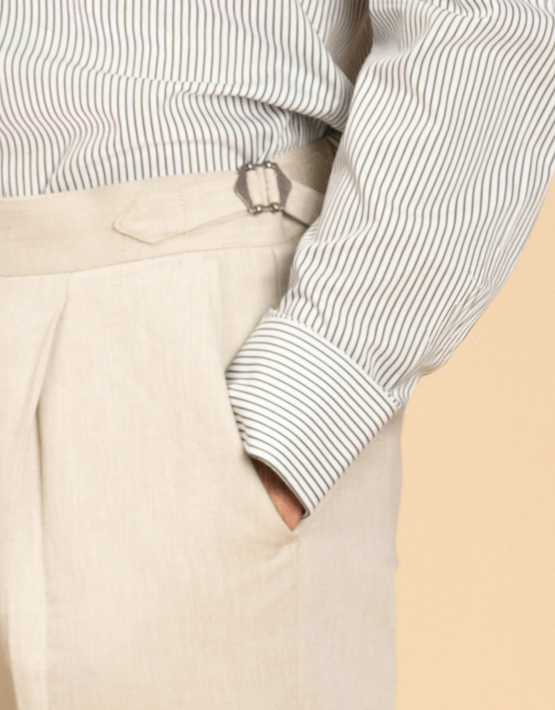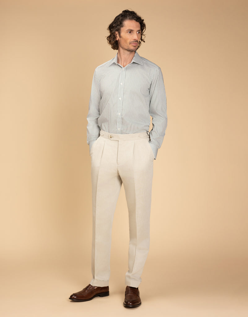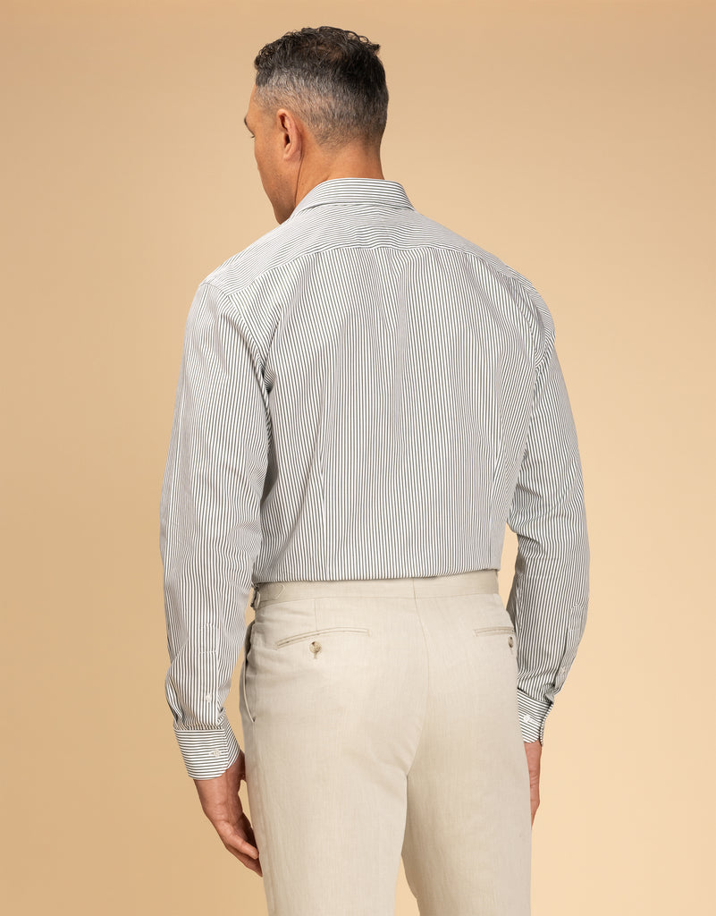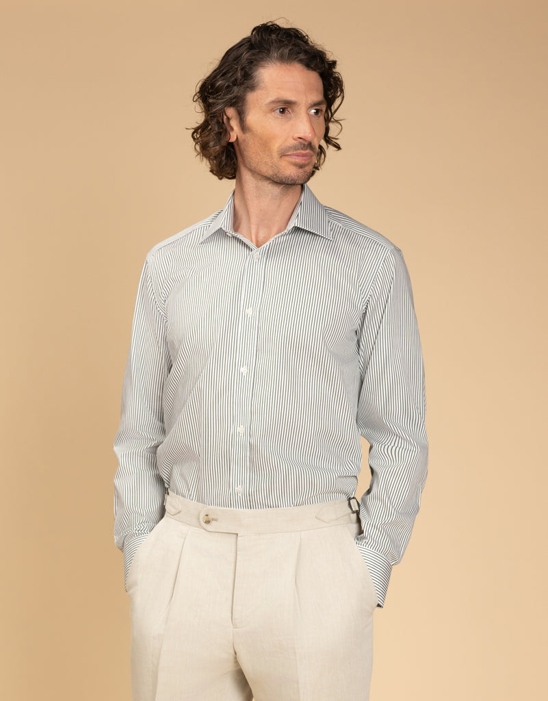 The London Green Pencil Stripe Shirt is a versatile addition to your wardrobe, featuring sleek green stripes that add a subtle pop of color. Designed for comfort and style, it’s perfect for both casual outings and more polished looks. This shirt helps you feel confident and approachable, making it easy to dress up or down with ease. Embrace effortless style with this fresh, modern classic.