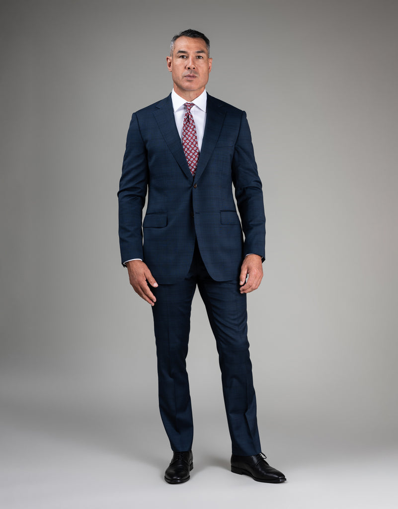 Our most popular fit. A contemporary cut that is slightly wider across the Jacket chest and abdomen and wider in the Trouser leg than the Narrow fit. It creates a flattering silhouette on men of all shapes and sizes.