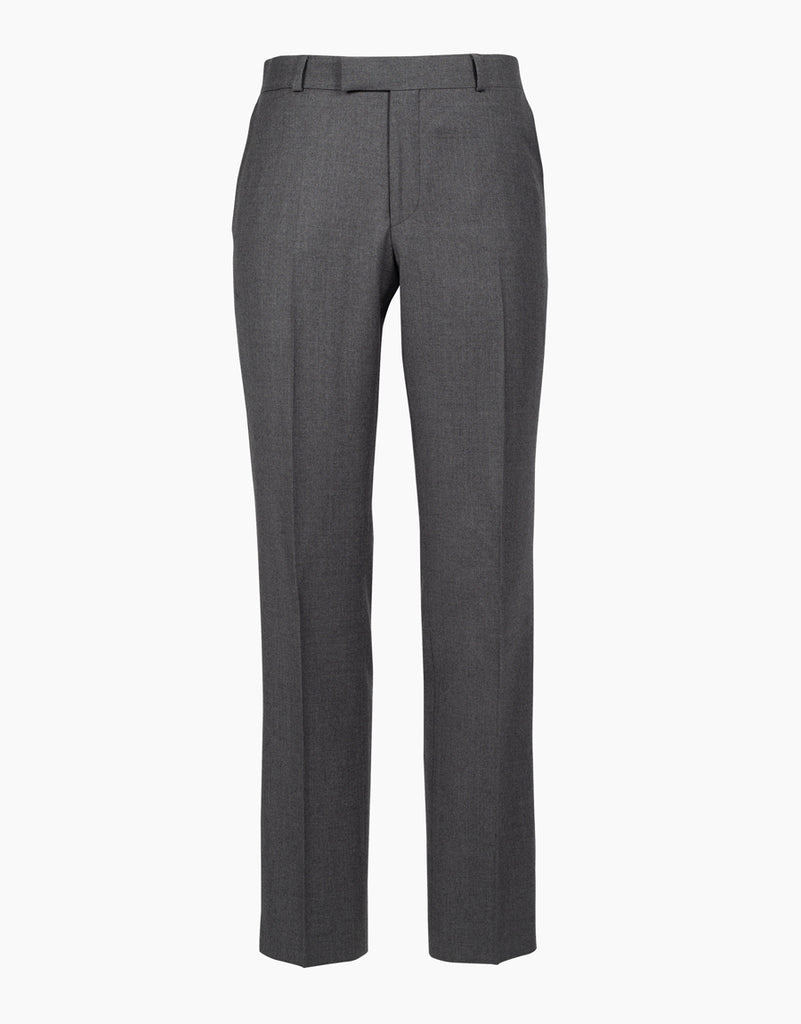 Light grey trousers paired with a navy blazer is a menswear classic. It's a stylish alternative to wearing a suit. This Lotus trouser is made from a lightweight pure wool flannel fabric.