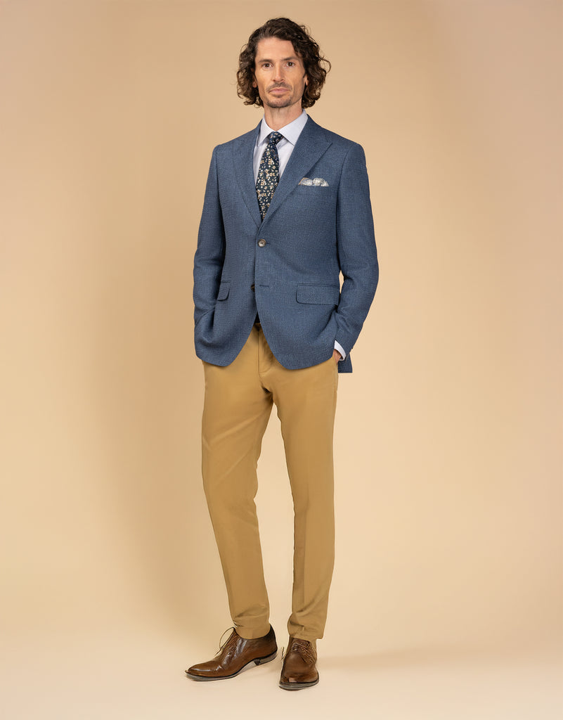 Our most popular fit. A contemporary cut that is slightly wider across the Jacket chest and abdomen and wider in the Trouser leg than the Narrow fit. It creates a flattering silhouette on men of all shapes and sizes.
