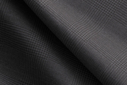 This charcoal glen check made to measure suit, is tailored using a 100% wool luxury suiting from the Holland & Sherry Intercity range. Specifically woven to give the fabric body and fullness, which provides both durability and good drape.