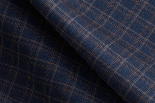 Made To Measure Flecked Dark Blue with Brown Check Jacket