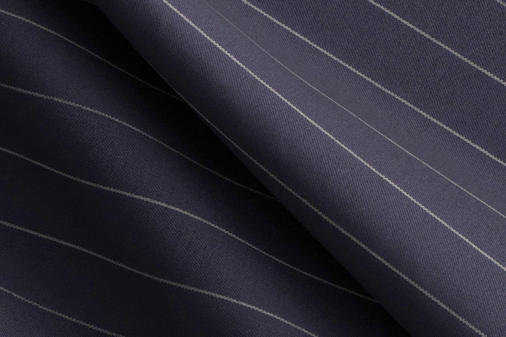 This navy fancy chalk stripe made to measure waistcoat, is tailored using a 100% wool luxury suiting from the Holland & Sherry Intercity range. Specifically woven to give the fabric body and fullness, which provides both durability and good drape.