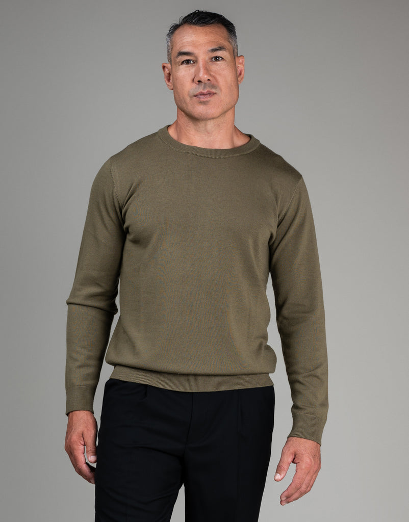 Naseby Olive Green Crew Neck Jersey