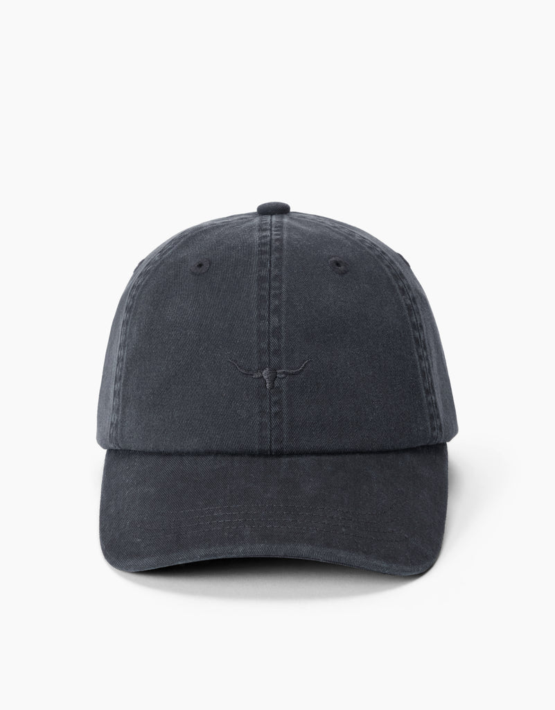 Crafted from 100% organic cotton twill, this cap features an embroidered mini Longhorn logo and an adjustable strap with a brass branded logo metal clasp.