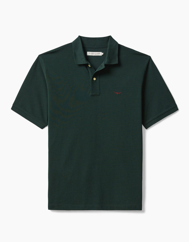 Experience enduring style with the R.M. Williams Rod Olive Polo, made from soft organic cotton pique. This classic piece includes a two-button placket with branded buttons and distinct contrast Longhorn embroidery on the chest for a confident, polished look.
