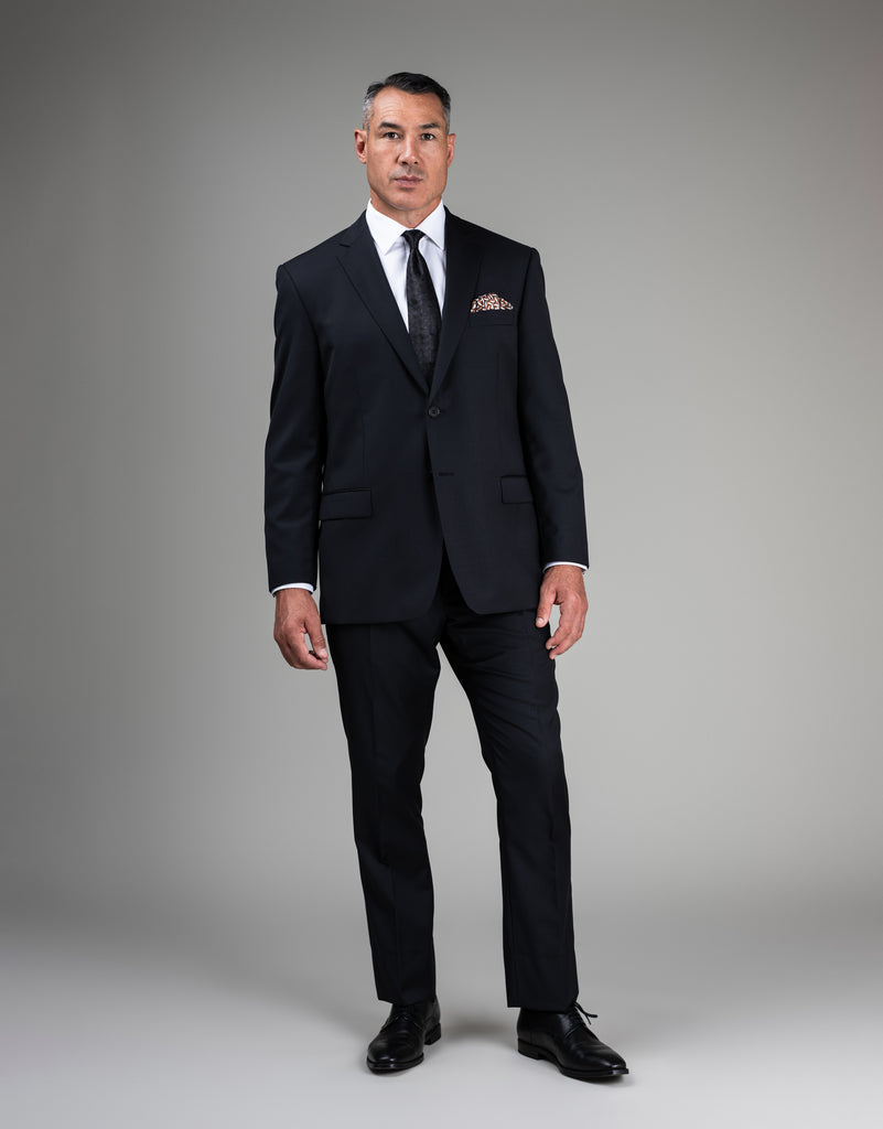 Our most popular fit. A contemporary cut that is slightly wider across the Jacket chest and abdomen and wider in the Trouser leg than the Narrow fit. It creates a flattering silhouette on men of all shapes and sizes.