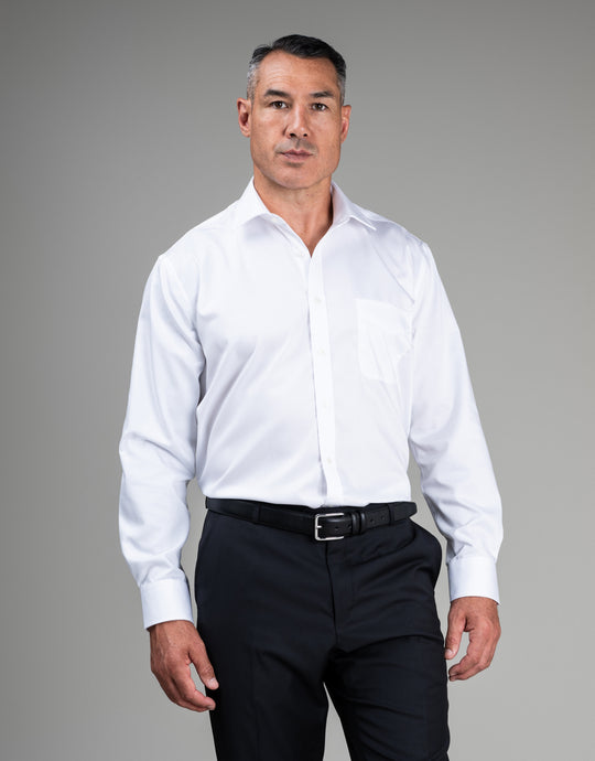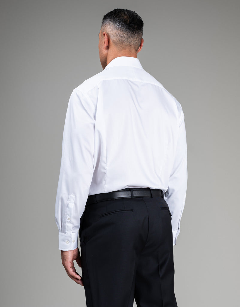The Sinatra White Fine Twill Shirt is crafted for today’s professionals who value style, fabric, and fit in a top-quality shirt that’s perfect for work and formal occasions. Made from soft cotton, it’s crease-resistant and simple to iron, ensuring you stay comfortable all day. With a classic chest pocket and back pleats for added mobility, this shirt offers both practicality and polished elegance.